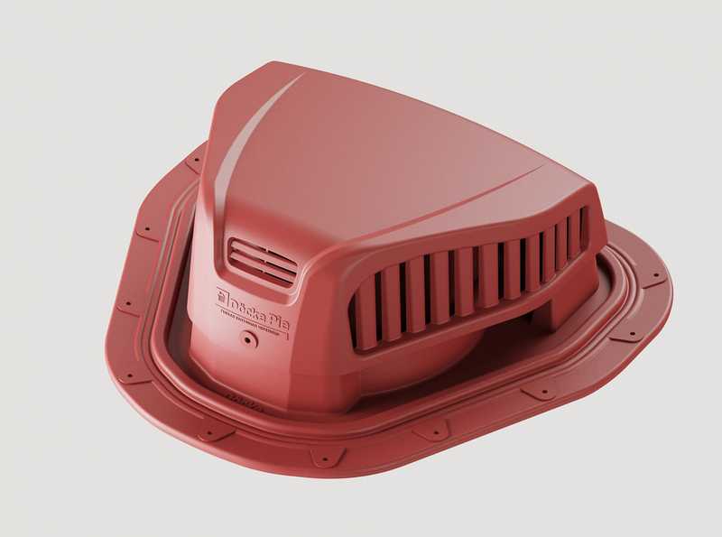 Отличный выбор, чтобы обустроить систему вентилирования подкровельного пространства и сделать яркий акцент в дизайне. Приглушенный красный оттенок аэраторов визуально усилит цвет красно-коричневой кровли.
