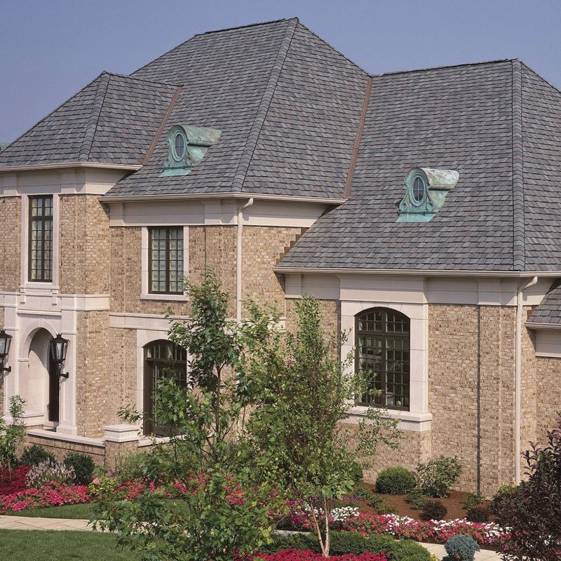 Grand Manor – серия элитной черепицы, выполненная в виде четырехлепесткового шинглз, с имитацией сланцевой кровли.